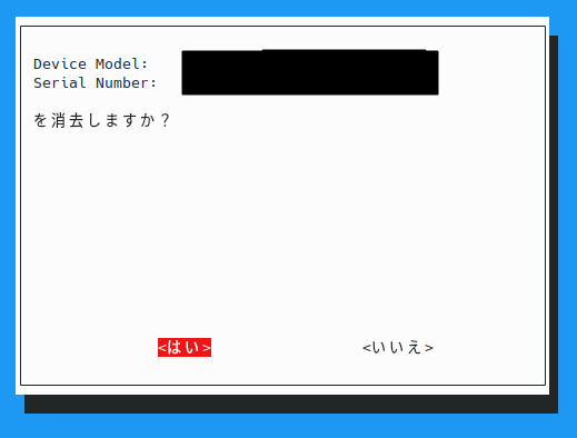 whiptail --yesno "${hddmodelsn}\n\nを消去しますか?" 20 40
